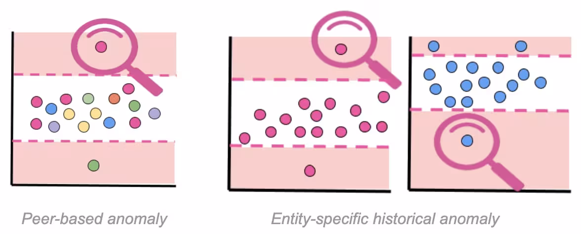 Meanwhile, a behavioral anomaly is a deviation from expected behavior; either a difference between an entity and its peers, an entity and its historic behavior, or some combination of the two.