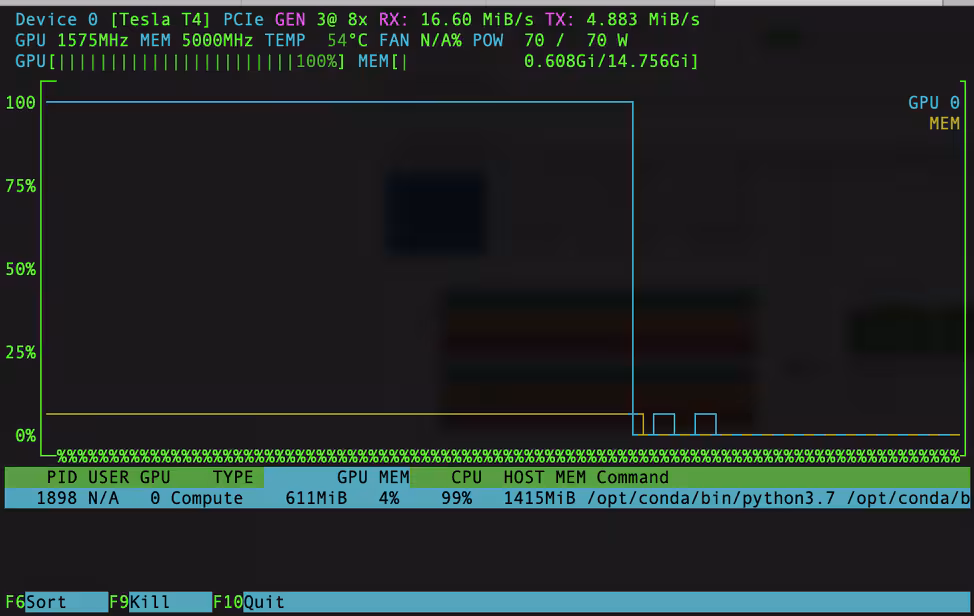 I usually install nvtop which is like ntop but for GPU devices. Just follow the build process below. Sometimes you might get an error similar to “Could not get lock file …” and the apt-get command will fail. As this is a more complex issue than what we think I recommend just wait a few minutes for the auto update process to finish.