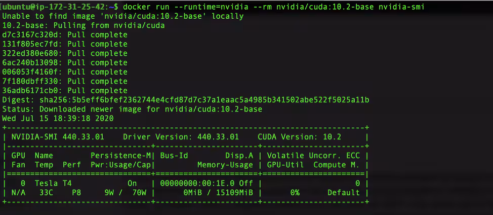 docker run --runtime=nvidia --rm nvidia/cuda:10.2-base nvidia-smi