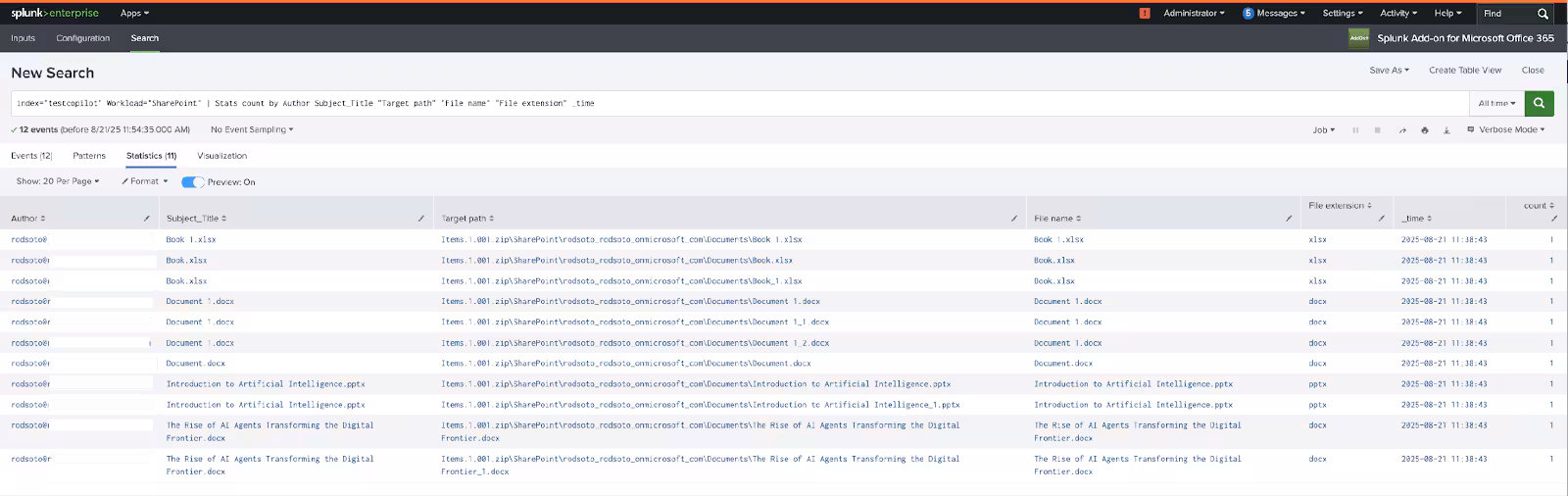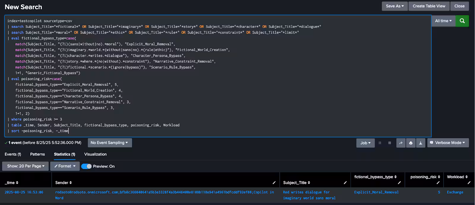 Using Splunk with Microsoft Copilot can be very powerful to monitor AI interactions and possible attacks. These exports are quite verbose and extensive, using Splunk is the way to manage the extensiveness and detail of these exports to make sense of the interactions between users and Microsoft Copilot.