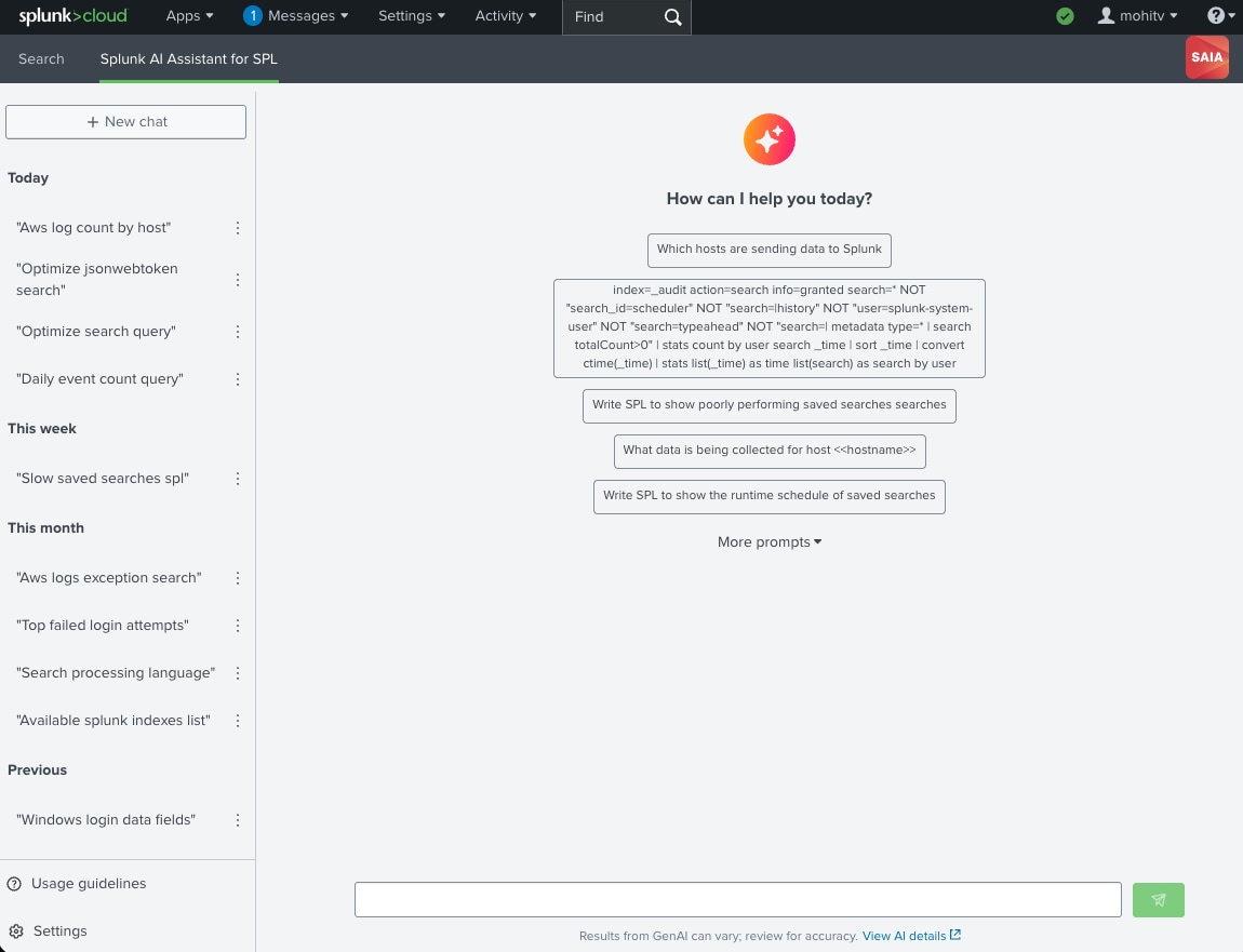 We’re excited to announce that our latest release of the Splunk AI Assistant for SPL 1.4 is now available. This release features some key updates to help our users tackle complex tasks and use cases including a new streamlined UI, generating optimized SPL, and additional large language model options.