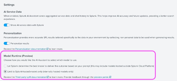 AI Assistant can now leverage Azure OpenAI models. While our Splunk-hosted LLM is purpose-built for Splunk use-cases, the addition of Azure OpenAI provides users with an additional larger general purpose foundation model that has more general knowledge about the world. Both models leverage the core innovation retrieval-augmented generation (RAG) with core Splunk knowledge to provide users with more context-aware results that are relevant to your organization’s needs and use cases.