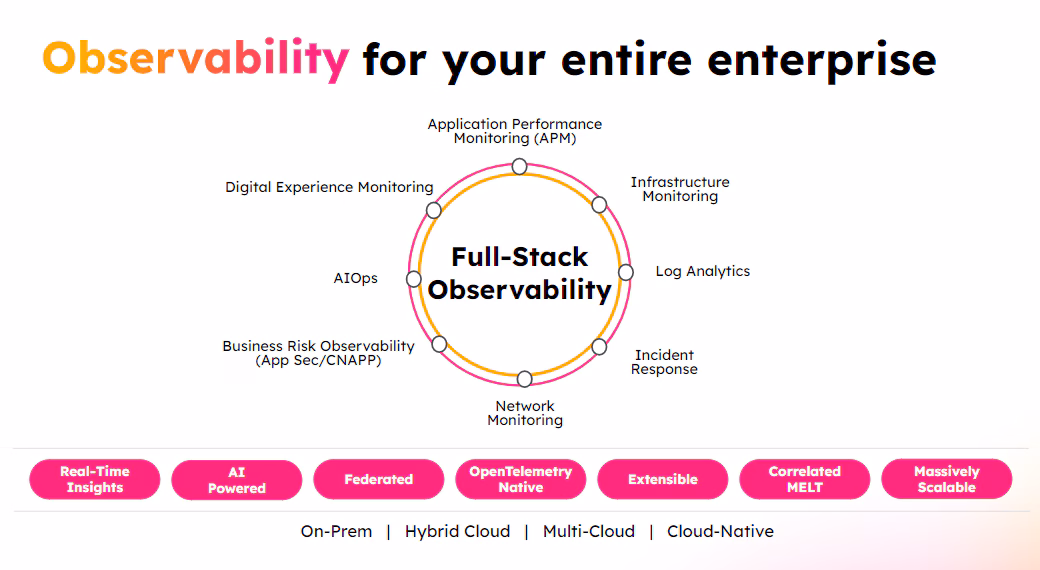 On the one hand, we have Cisco, a powerhouse in the networking, cybersecurity and software market. Cisco’s observability offerings comprised of AppDynamics, Cisco AIOps, and more provide unparalleled visibility into the network and traditional tier-three apps.