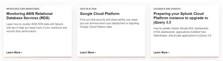 Splunk Lantern articles are full of links to help you find additional information and help. If the article you clicked on doesn't give you exactly what you were looking for, chances are you can still find it by clicking the product links below each title and the resource links at the bottom of each page.
