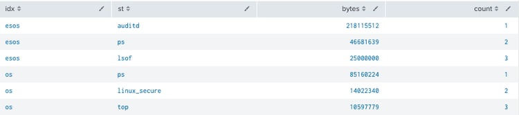 This example shows us that a new column is created called total_bytes with the eventstats command and sums all data from the bytes field grouped by the idx field. This helps us evaluate the percentage of bytes each sourcetype (st) is indexing in each index during our timerange.