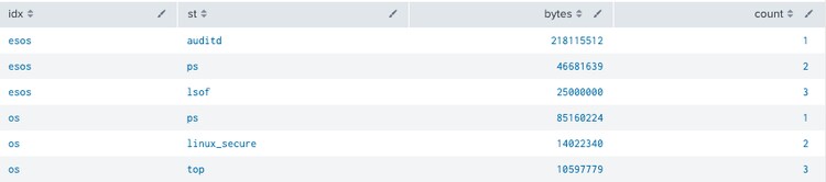 This example shows us that a new column is created called total_bytes with the eventstats command and sums all data from the bytes field grouped by the idx field. This helps us evaluate the percentage of bytes each sourcetype (st) is indexing in each index during our timerange.