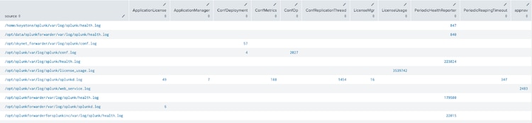 index=_internal | stats count by source component|xyseries source component count