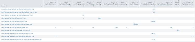 From there, you could write some additional SPL to eval new fields for error_logs and count to rebuild the original output. If I had used |fillnull, I could have used that before |untable to bring in all values, as well, which is a great use case of using xyseries/chart commands and untable together.
