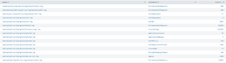 index=_internal | stats count by source component