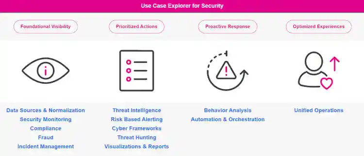 The Use Case Explorer for Security starts with Foundational Visibility: the basics of getting data in and using Splunk Security Essentials for security monitoring. As you advance through Prioritized Actions and Proactive Response, you'll learn how Splunk Enterprise Security and Splunk SOAR help you apply well-known cyber frameworks to your security processes, as well as effectively manage key use cases in the areas of risk-based alerting, threat intelligence, and threat hunting. Finally, when you reach Optimized Experiences, you'll use Splunk Mission Control to unify threat detection, investigation, and response capabilities in a single work surface, enabling a comprehensive view of security insights and trends.