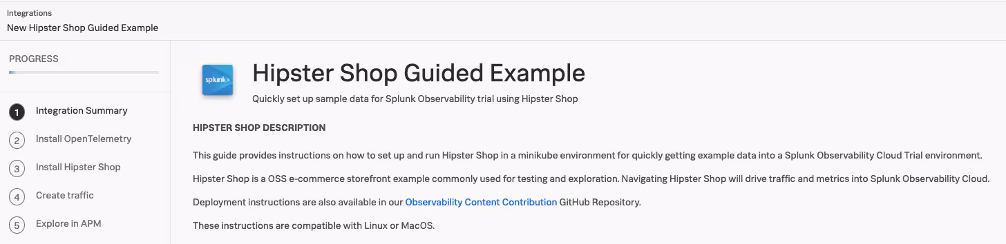 We've built an accelerated experience to “Try With Sample Data” within our ‘Hipster Shop Guided Example,’ where within ~12 minutes you will walk through five steps: