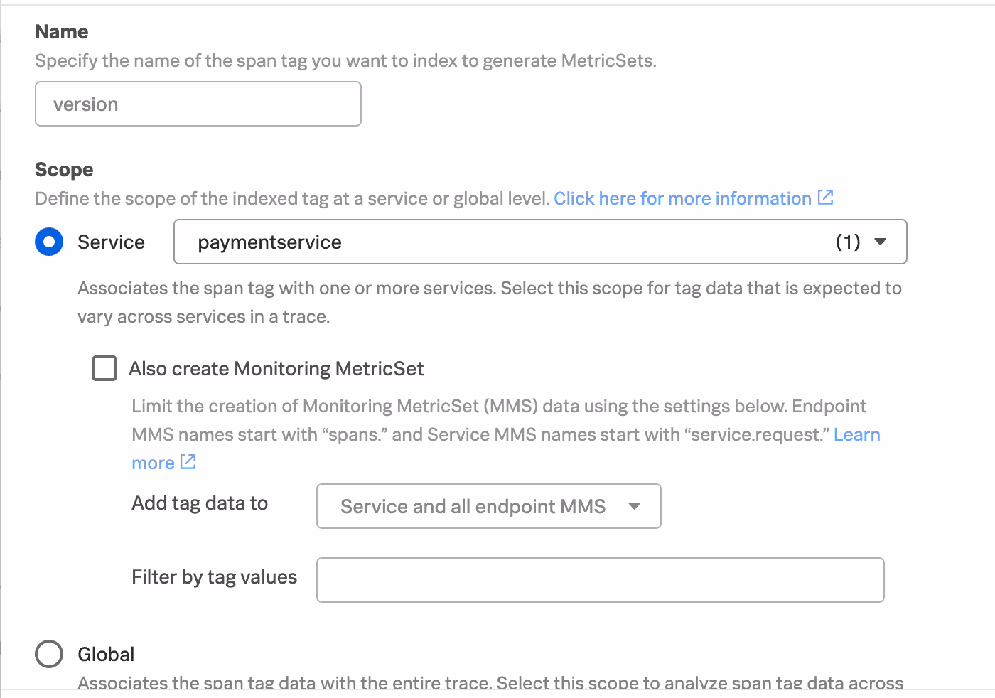 The user interface provides a clear method for defining the scope of tag data, allowing you to associate it with specific services or apply it globally across traces. At Splunk, we know that when it comes to time series metrics, effectively managing and comprehending metric cardinality is best practice. That's why Splunk APM enables you to run a cardinality assessment to understand how indexing tags will modify the breadth and depth of your metric data before applying the update. Once reviewed, you can activate the MetricSet to gain fresh insights into your application.
