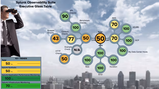 Figure 3: Multi-Cloud service health scores shown in a Splunk Observability Executive Glass Table