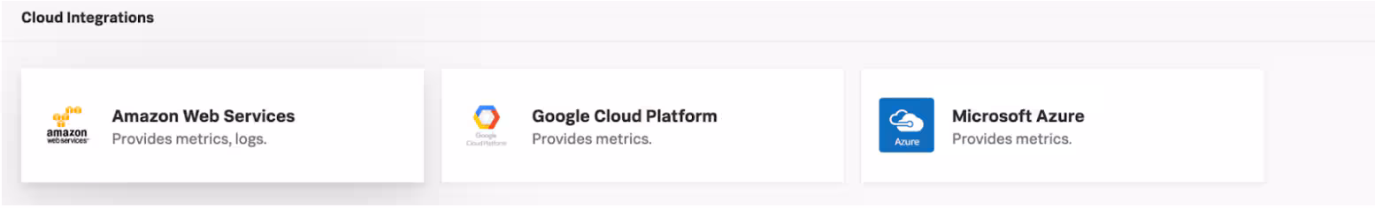 - Select Add Integration and then the Amazon Web Services tile, which will open the guided setup wizard.