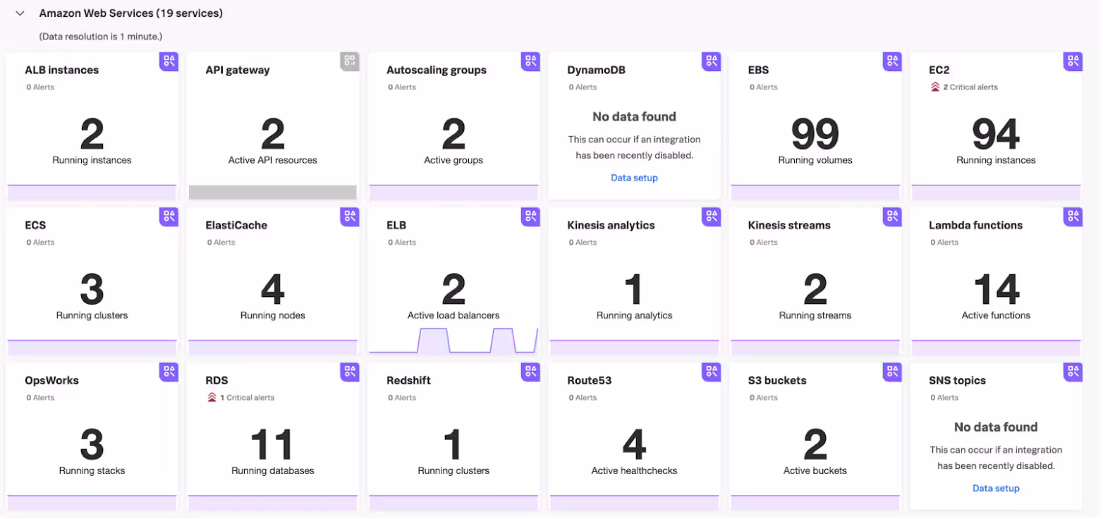 All your engineering teams will have access to valuable insights about your AWS services, such as an overview of Lambda functions or a heat map of errors in your EC2 instances.