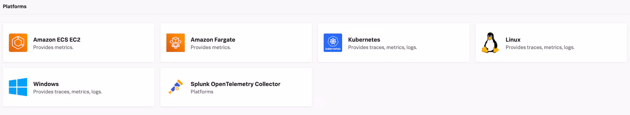 Splunk Observability Cloud also includes a guided setup wizard for Kubernetes integrations so you can get near real-time visibility to your Kubernetes environment. Similarly, you would select Kubernetes from the Integrations page to get started with the guided setup.