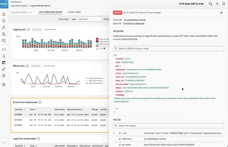If your organization already uses Splunk Platform for logs, Log Observer Connect within Splunk Observability Cloud can seamlessly integrate your log data from Splunk Cloud or Splunk Enterprise. And with the new log timeline feature, along with log view, users can import their logs into their Splunk Observability Cloud dashboards and troubleshooting workflows to find and solve problems faster–without having to pay for the same data twice.