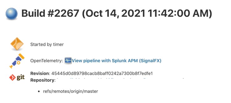 Noticing a slow increase in the time it takes to run pipelines across your organization? Send your Jenkins APM data through Splunk Log Observer to emit time series metrics of all steps and easily visualize increased (or decreased) time spent on various steps across all jobs even after your Jenkins data has aged out of APM.