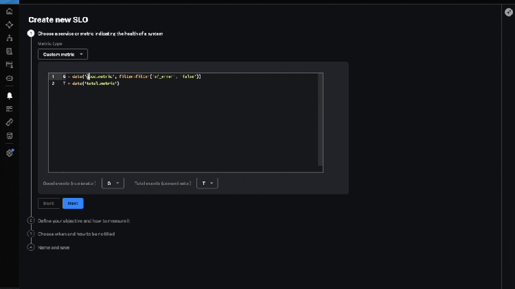 - Expanded SLO management functionality in Observability Cloud with custom metrics SLOs simplifies the experience for engineering teams to enhance analysis and proactively alerting on business metrics.