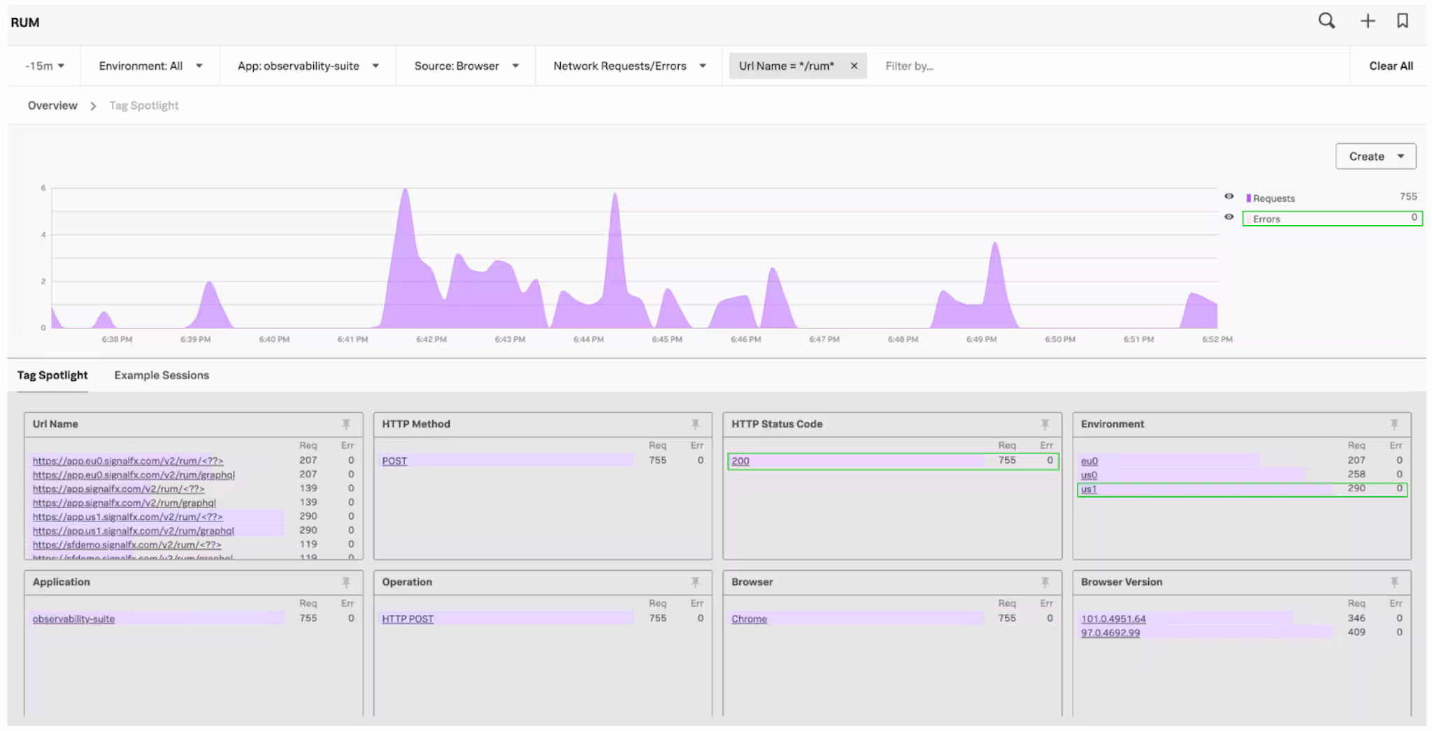 Splunk RUM’s Tag Spotlight page began to report only 200 HTTP status codes for all /rum GraphQL requests which was a huge relief!