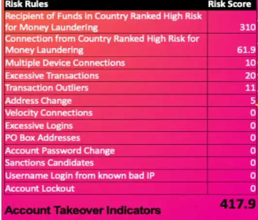 Former Splunker Haider Al-Seaidy came up with an approach that adds weighted risk scores for each rule. The accumulated value of all the risk scores would tell an analyst that a crime is certain and it allows the ability to triage events so that a single change of the OS browser or address change does not trigger a pot of false positives to investigate. Here’s an example of accumulating risk scores for account takeover events so that analysts can be certain if this is indeed the case because the accumulated risk score is over a threshold.
