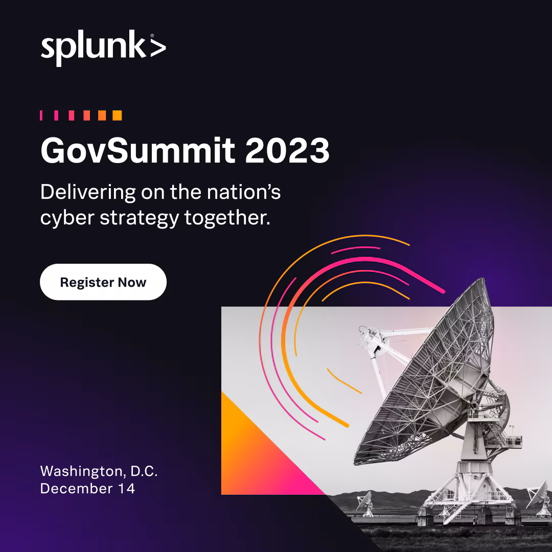 GovSummit is returning to the nation’s capital on Thursday, December 14. We’re thrilled to bring together innovative public sector leaders for this free, industry-leading event. Registration is now open! Join us as we demonstrate how you can deliver on the nation’s cyber strategy with Splunk.