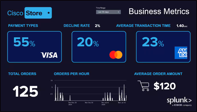 With the Cisco Store being an omnichannel retailer, Splunk IT Service Intelligence provides visibility across the physical and online stores with real-time key performance indicators and service-level monitoring. And, to ensure the uptime of the network connected experiences, ThousandEyes data is ingested directly to the platform. Splunk enables the Cisco Store to proactively manage and troubleshoot IT issues across all experiences through AI-driven incident prediction, detection and resolution. With intelligent incident management and predictive analytics via Machine Learning, anomalies can be quickly detected and adaptive thresholding can predict issues before they impact the customer journey. This end-to-end visibility is achieved by combining Cisco’s world-class network and security infrastructure with Splunk’s powerful data analytics capabilities.