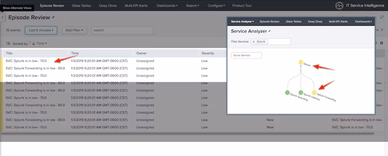 Save and enable that new correlation rule and you’re done. Use your test service to validate, and once the service degrades, you should see one or more notable events created in the episode review. Remember, we’ve decoupled the criteria which drives the creation of notable events from the creation of alerts; so we’re not necessarily going to produce alerts if the service health changes to low, but we now have more information and more context about this service that we can use to our advantage in the future.
