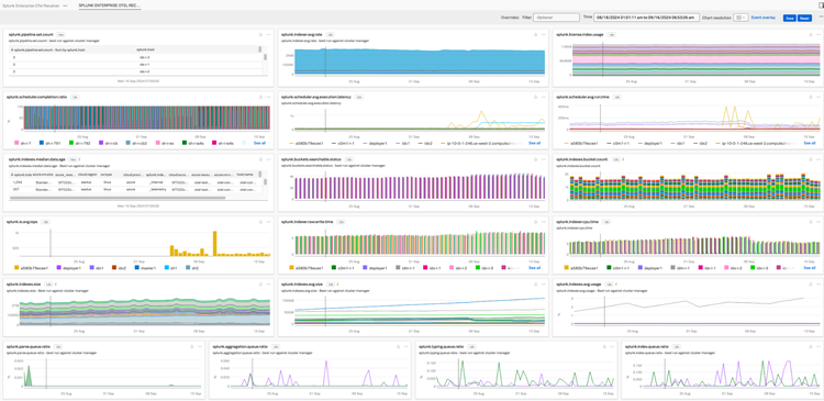 The receiver has just been released and into alpha status and currently provides details into indexers, search scheduling, queuing, the K-V store, and much more to come! We’ve even begun dogfooding the receiver internally at Splunk to help introspect our own Enterprise instances. Let's take a look at some of the current data the Splunk Enterprise receiver provides and how you can get value out of it!