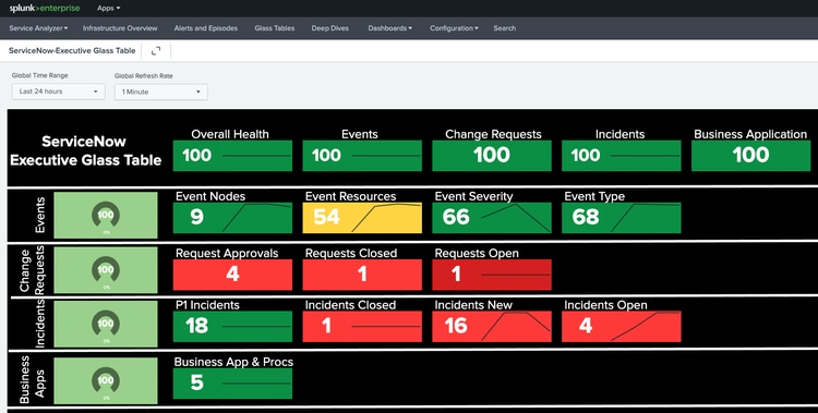 Within the Splunk Content Pack for ServiceNow, we have provided the 4 Glass Tables: [please do remember it is simple to clone and make these examples your own, often only taking minutes]