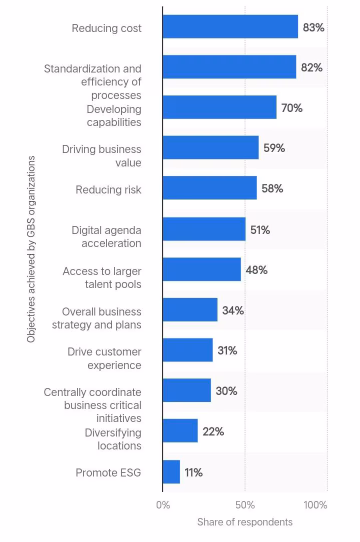 In 2023, reducing costs was the top objective Global Business Service (GBS) organizations achieved. The reason it happened was because their primary goal would be to achieve cost reduction. This shows if you want to achieve a certain thing, you should always set clear goals including the budget and time frame to achieve those goals.
