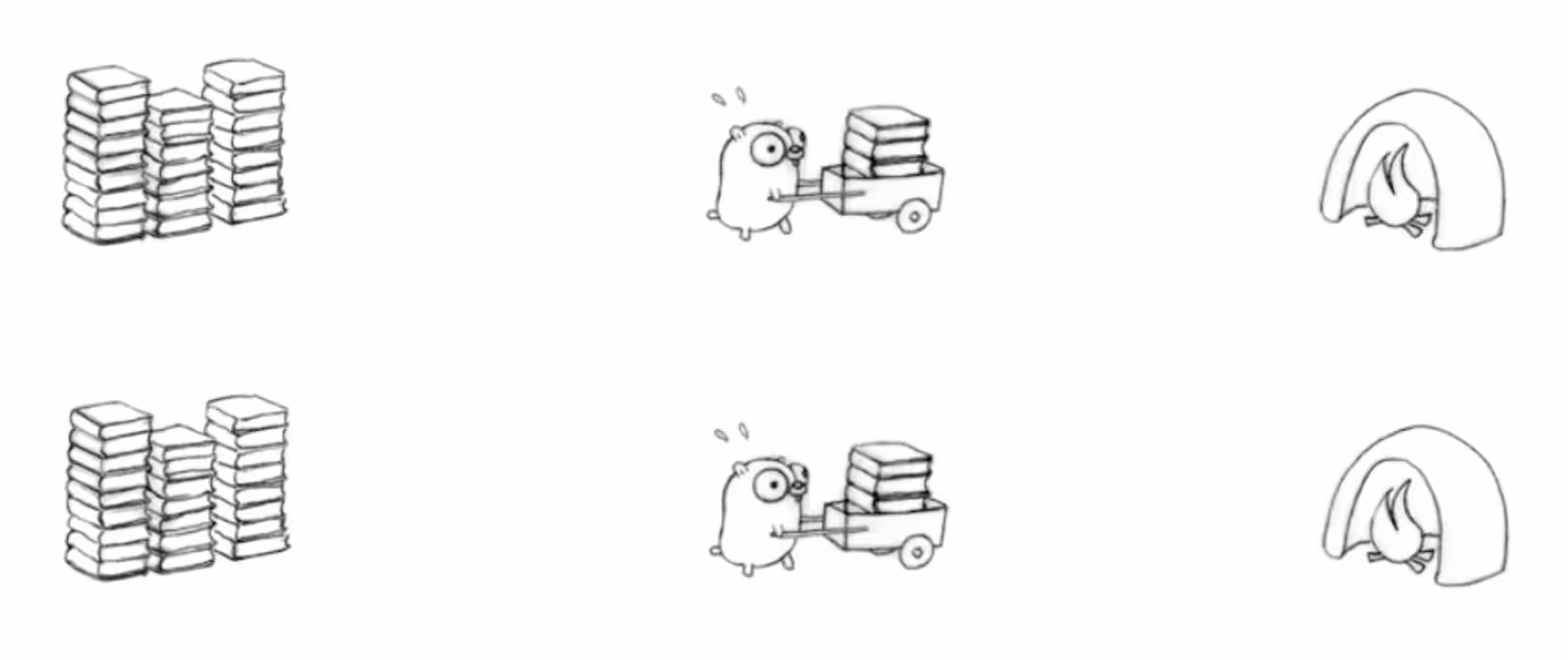 Key to concurrency: each sub-task is interruptible. Gophers can communicate to eliminate delays, enabling concurrent processes. A concurrent process is then easily parallelized and scalable, for example if you have a multi-core CPU system:
