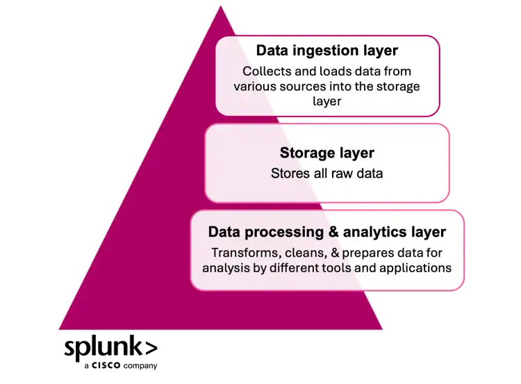 - Data ingestion layer: This component collects and loads data from various sources into the storage layer.