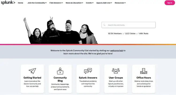 Many tech providers, including Splunk, have resources like Docs (technical documentation) and online Community groups for users.