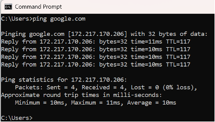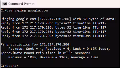 Ping command example