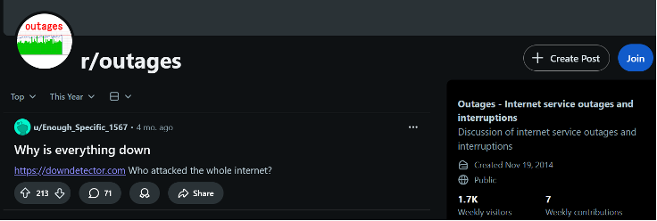 Subreddit on Internet Outages (r/outages)