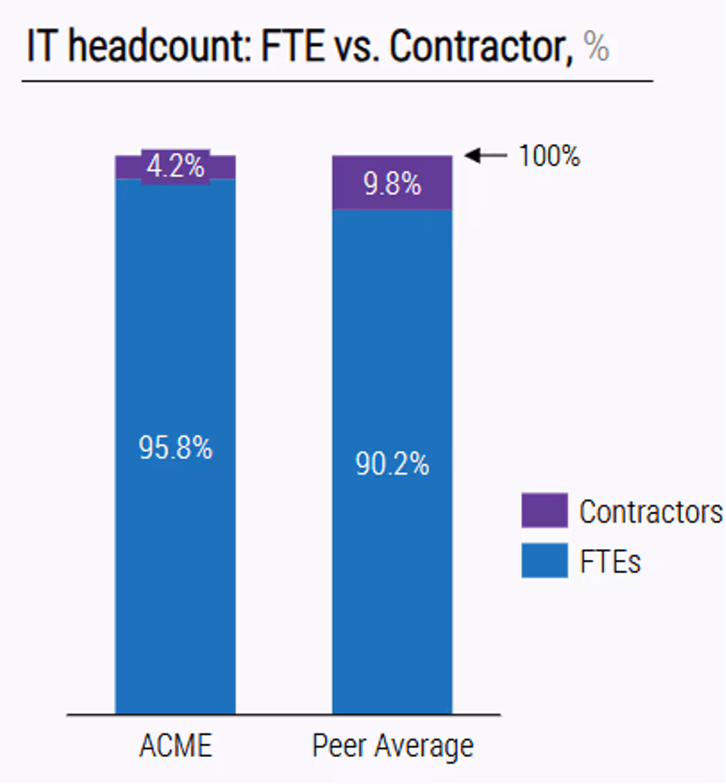 - It does not always transfer well between organizations without context. No two IT providers are identical. Even if organizations share similar revenue, staffing, and industries, they may operate under different models or serve different markets. Therefore, IT benchmarking data should serve as a guide for improvement, not as a strict target.