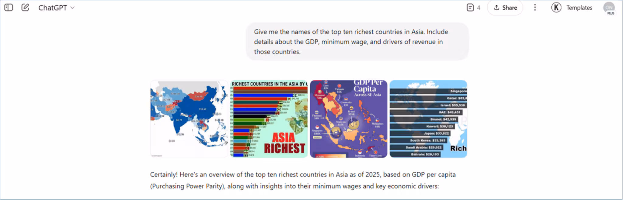 This information is correct, but not helpful for my research about Asian countries, so I went back and gave it a more detailed prompt.