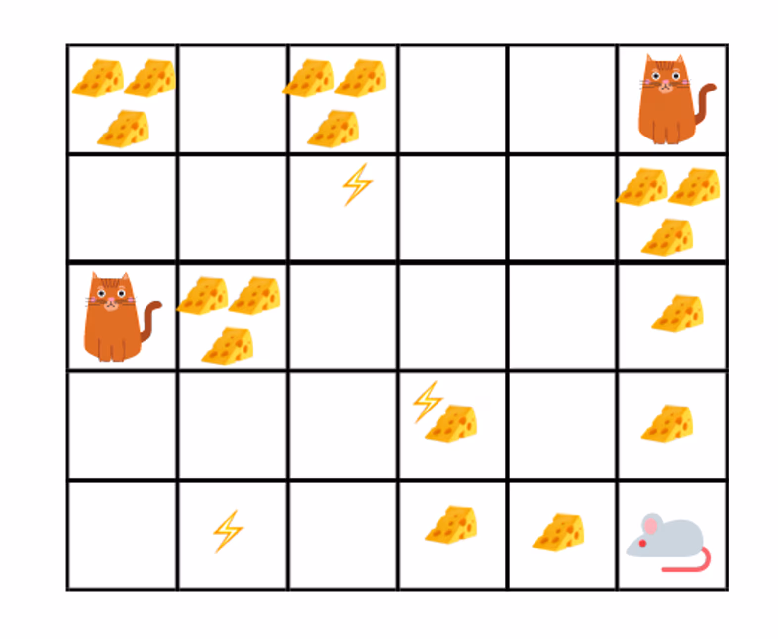 - Meeting an environment state (any box in the maze) with a cat can cause a very high penalty.