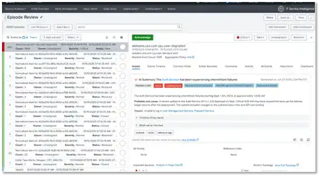 ITSI already reduces alert noise by correlating and grouping related alerts into episodes. Now, using advanced AI, Splunk ITSI can pull together all the key information about an episode—what happened, when it started, the most important events, and even a first look at what caused the problem—into a single, easy-to-read AI-generated summary. This means teams can go from clicking through tabs to seeing the most relevant details and suggested next steps in just one click. Not only does this save time and reduce confusion, it also helps newer users get more value from the platform right away. Plus, summaries can be shared easily with others or copied and pasted into tools like ServiceNow, so everyone stays in the loop. In short, Episode Summarization helps teams work smarter, respond faster, and keep their critical services running smoothly. ITSI Episode Summarization is in Alpha. Request access at the Splunk Voice of the Customer site.