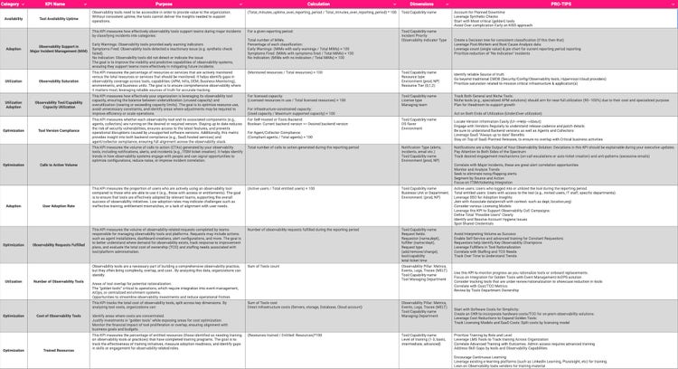 - KPI Goal: Reduce the number of observability tools by 5% in the next quarter.