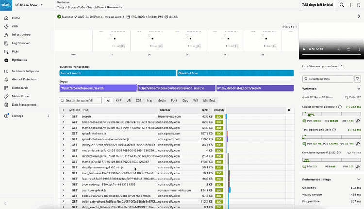 Splunk Synthetic Monitoring lets you proactively test these workflows from key locations. Real User Monitoring (RUM) adds live behavior insights like device, browser, geography. And with seamless correlation from RUM into backend APM traces, you can follow performance issues across the full journey. Content and digital teams can validate Core Web Vitals (CWVs) and ensure key pages load as intended before customers feel the impact.
