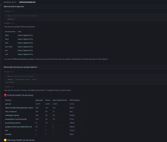 AI agents now have one unified MCP server to access Splunk’s tool capabilities. Splunk MCP Server provides a secure and scalable interface for connecting AI assistants, agents, and other intelligent systems to Splunk data, and now specifically to Observability Cloud capabilities. This provides teams with the flexibility to seamlessly integrate their local AI agents, LLMs, and tools, and data with Observability Cloud data to build custom AI workflows and debug performance issues in production without leaving their environment. Observability Cloud capabilities on Splunk MCP Server are in Alpha. Learn more about Splunk MCP Server in our documentation.
