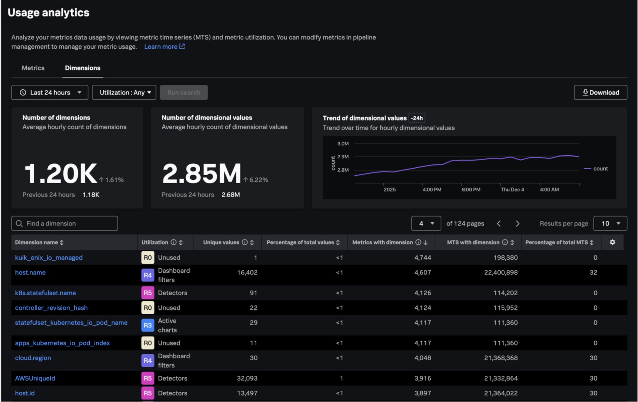 In the world of observability, managing metrics effectively is paramount. While our Metrics Usage Analytics (MUA) has empowered you to keep your data volume in check by identifying and optimizing unused metrics, the journey to a lean, cost-efficient, and insightful telemetry pipeline doesn't end there. We're excited to introduce the next evolution in smart telemetry management: Dimension Utilization, designed to tackle the often-hidden culprit of escalating costs and data bloat – high-cardinality dimensions.