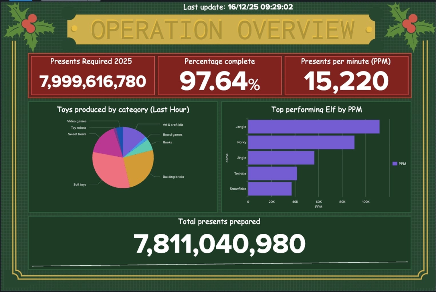 This year I revisited the North Pole operations Centre (everyone loves a rename), and focussed on building a more complete view of arguably the biggest global operation there is. Not because the dashboard needed more decoration, but because the operational story was incomplete.