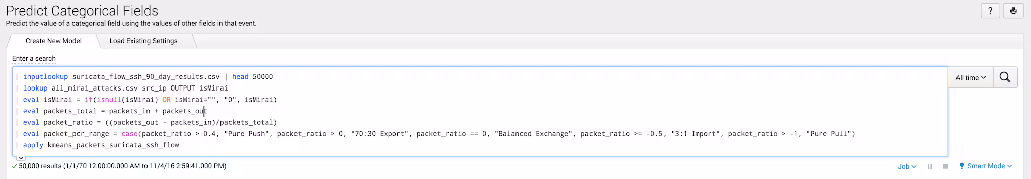 Since the official rollout at the year’s. conf of the Machine Learning Toolkit(MLTK), Splunkers have been pursing some interesting use cases ranging from IT operations, planning, security and business analytics. Those use cases barely scratch the surface of what is possible with machine learning and Splunk. As an example, I will use the machine learning toolkit and data collected from Suricata to analyze botnet populations. This population analysis will be used to create a model for predicting the Mirai botnet based on network features.