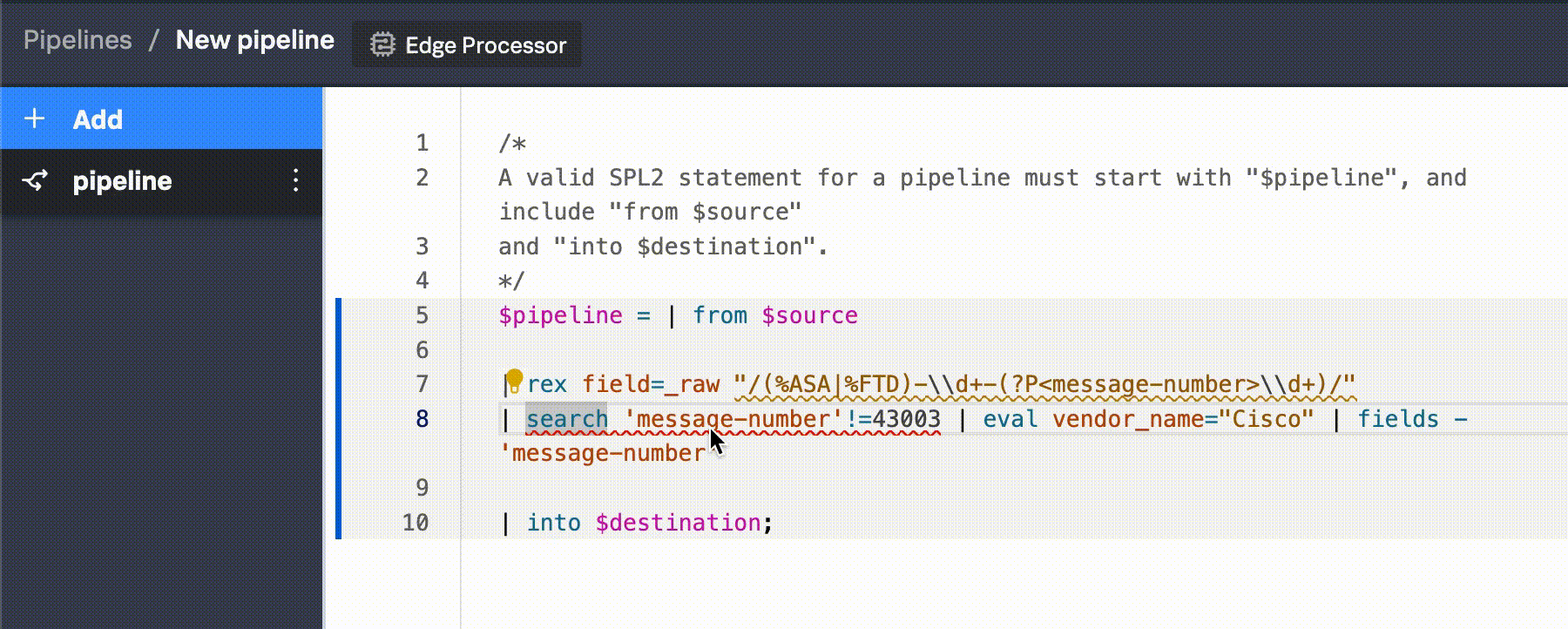 Now, how do you use this SPL in an Edge Processor pipeline? You have two ways: