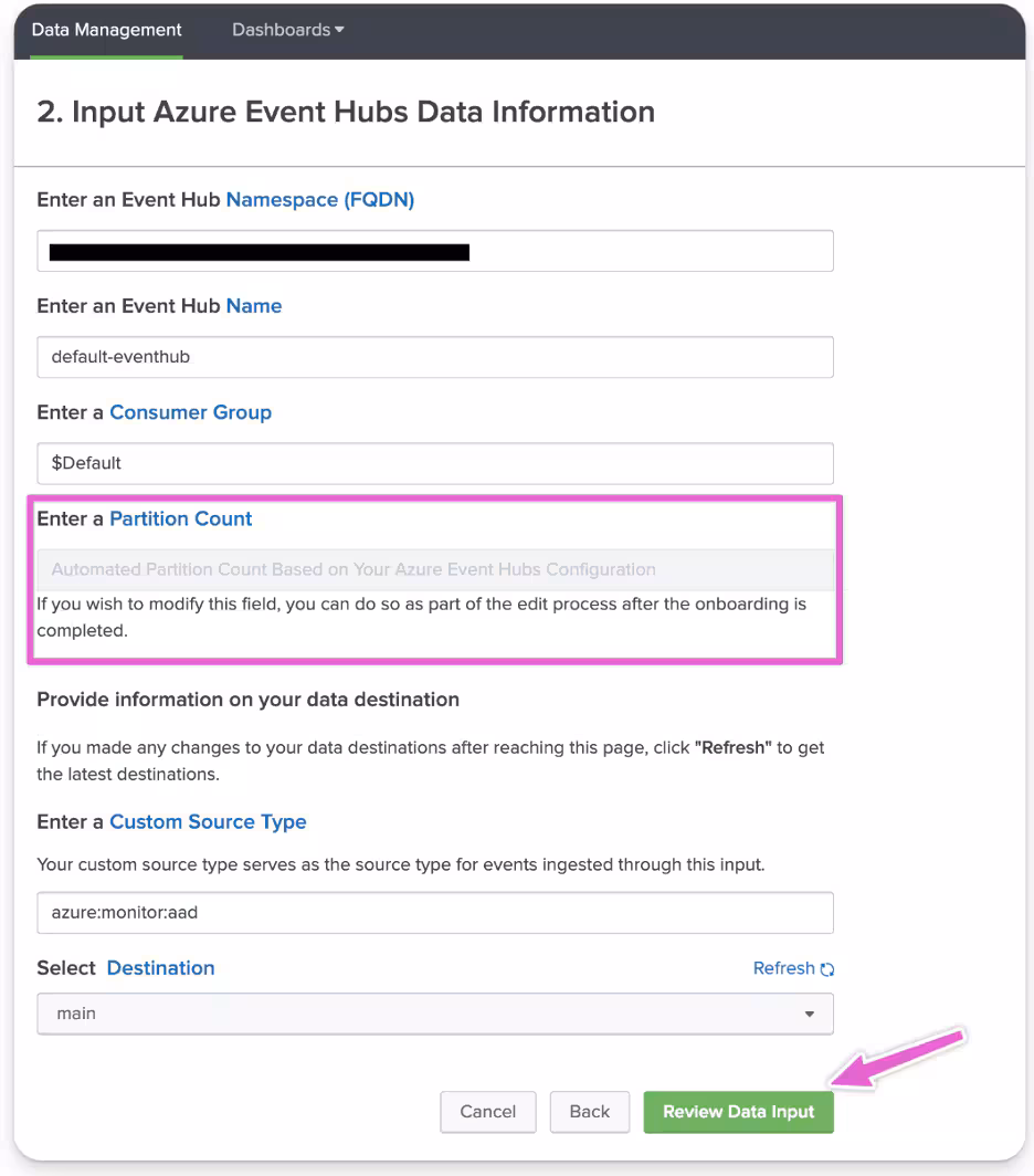 How to Set Up the Azure Event Hubs Data Input in Data Manager