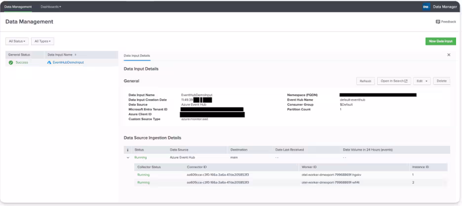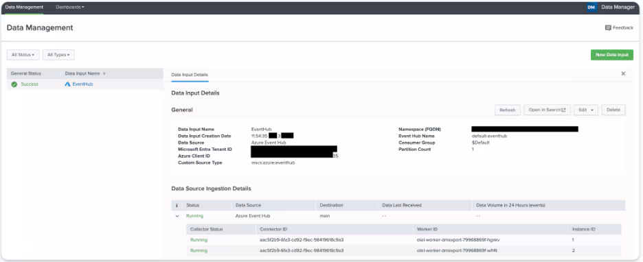 This article is divided into two main sections. First, we go through the process of setting up new Event Hub input in Data Manager and migration steps from Microsoft technical add-on to Data Manager. Then, we examine key features of the connector, including automated partition detection.