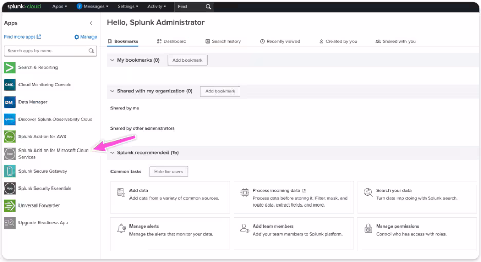 - Navigate to the Splunk Add-on for Microsoft Cloud Services.